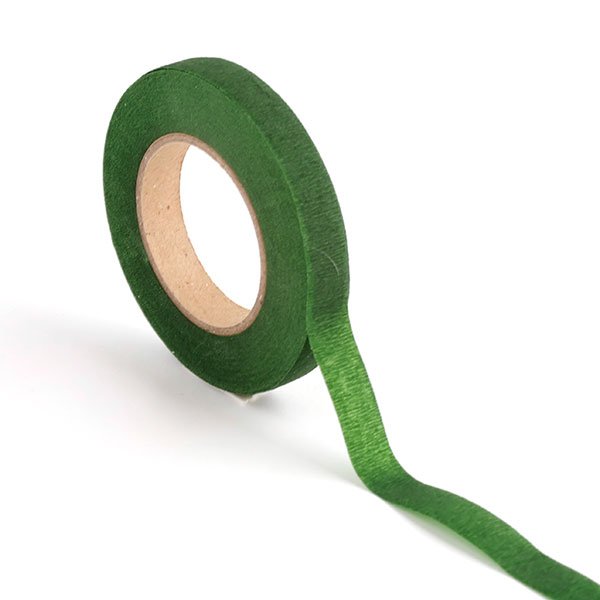 Флористическая тейп лента зеленая арт.72002 Каждый ролик имеет ширину 1,3см и длину 27м. Тейп-лента это тонкая эластичная лента с легкий клеющим эффектом. Применяется в квиллинге для изготовлении цветов на проволоке, украшений из бисера, различного декора.