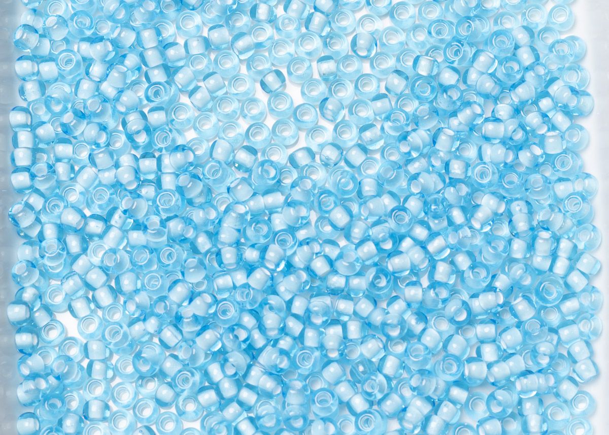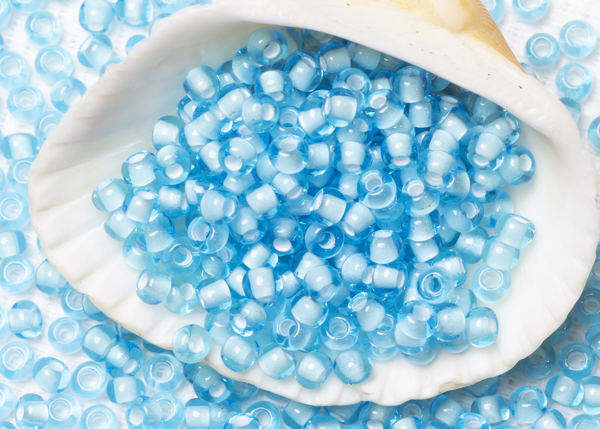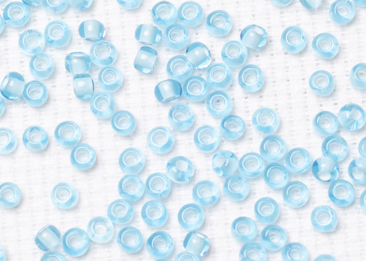 Бисер Чехия круглый 08/0 50 г 65016 прозрачный светло-голубой с белым прокрасом