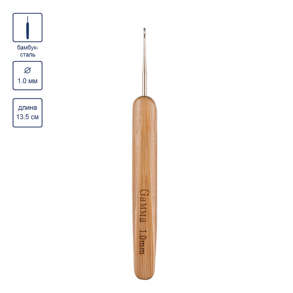 Для вязания " Gamma" RHB крючок с бамбуковой ручкой сталь бамбук d 1. 0 мм 13. 5 см в блистере .