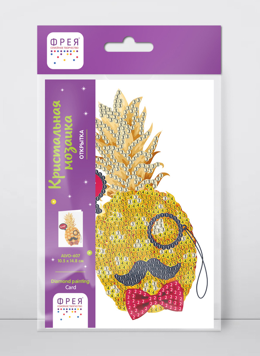 Кристальная ( алмазная) мозаика " ФРЕЯ" ALVO- 607 открытка " Ананас, бонжур!" 10. 5 х 14. 8 см