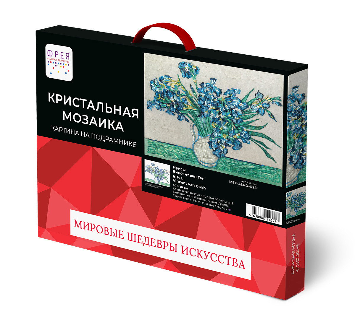 Набор по изготовлению картины на подрамнике в технике " Кристальная/ алмазная мозаика" по картине Винсента ван Гога - " Ирисы". В данном наборе холст уже натянут на деревянный подрамник, поэтому вам не потребуется оформления в багет. Картину сразу можно повесить на стену, при помощи специального крепления, входящего в набор, или поставить на полку. Увлекательный процесс создания поможет развить мелкую моторику и скрасить свободное время. Выполнение работы не требует специальных навыков, выкладывать картину очень легко и быстро. Круглые стразы наклеиваются поверх изображения со схемой на уже нанесенный клеевой слой. Благодаря граненным акриловым стразам, неповторимый блеск готовой работы напоминает мерцание настоящих кристаллов! Картина станет замечательным украшением интерьера и придаст неповторимый антураж! В набор ТМ ФРЕЯ " Кристальная мозаика" входит: - тканая основа с клеевым слоем и защитной плёнкой, натянутая на деревянный подрамник, - круглые стразы: 15 цветов, с запасом 20%, - стилус и восковая пластина, - лоток, - крепление для подвешивания картины на стену, - пакеты зип- лок. Тип выкладки: частичная. Уровень сложности: 2 из 3. Размер готового изделия: 40 х 30 см. Размер упаковки: 31 х 41 х 2, 5 см. Сообщить о неточности в описании
