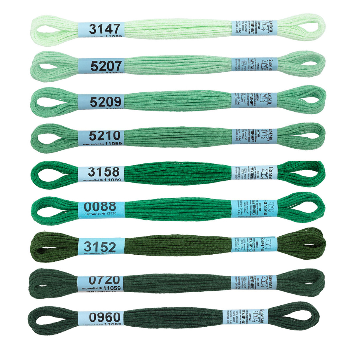 Нитки для вышивания Gamma набор мулине № 10 100% хлопок 9 цв. x 8 м Зеленый